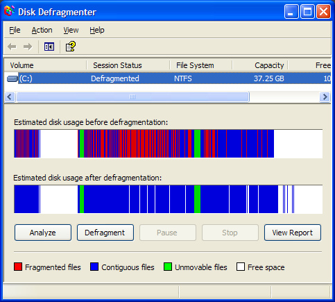 The first is to Defragment your hard drive. Over the course of regular use, your files get fragmented or spread out all over your hard drive. So while an MP3 or WMV file appears as a single file to you in Windows Explorer, small pieces of the file could literally be spread across the entire hard drive. Gathering all of these distant pieces back together into a single continuous order, makes files load faster. Defragmenting your drive can can make your system noticeably faster if you had lots of files fragmented.
